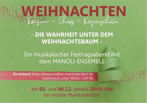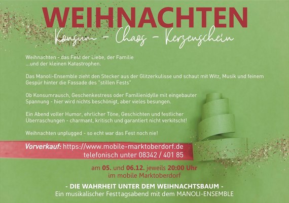 Das Manoli-Ensemble zieht den Stecker aus der Glitzerkulisse und schaut mit Witz, Musik und feinem Gespür hinter die Fassade des "stillen Fests".