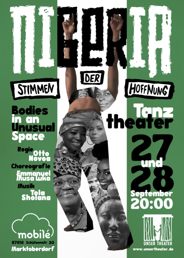 Dieses interdisziplinäre und internationale Tanz-Theaterprojekt ist eine Reise durch Nigeria mit seiner kulturellen Vielfalt, der ergreifenden traditionellen Musik, den mitreißenden Tänzen, der beeindruckenden Landschaft und den herzlichen Menschen, aber vor allem dem Mut und der unglaublichen Stärke der Frauen dort. Die Inszenierung möchte, mit dem Blick auf das tragische Schicksal der 276 Mädchen aus Chibuk/Nigeria, die am 14. April 2014 entführt wurden, Bewusstsein schaffen, Empathie fördern und eine gesellschaftliche Diskussion anregen. Das Tanztheater dient hier als kulturelle Reflexion, um Tabuthemen anzusprechen, Fragen aufzuwerfen und als Stimme der Hoffnung zu fungieren.